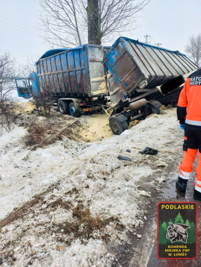 Zderzenie osobówki i pojazdu ciężarowego pod Łomżą. Jedna osoba trafiła do szpitala